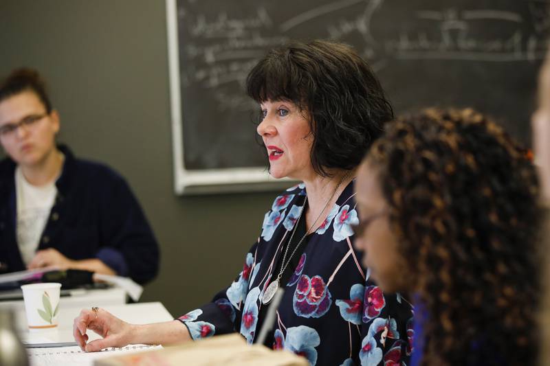“OK, now who can think of an artist whose life is entirely separate from their work,” she asked the class on a recent winter morning, playing devil’s advocate, as she often does.